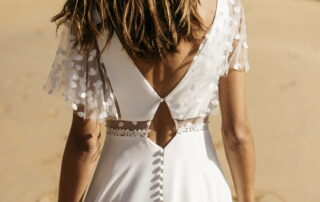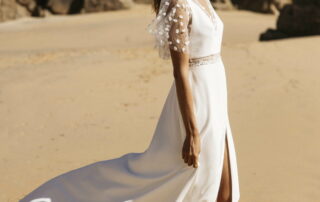 Découvrez la robe de mariée Circe, cette robe de mariée arbore une allure moderne et audacieuse, dévoilant gracieusement les jambes. Le tulle « pétales » habille délicatement le buste et les manches, ajoutant une touche de légèreté et de sophistication. Parfaite pour la mariée qui souhaite allier élégance et audace en ce jour spécial.