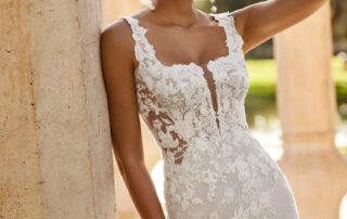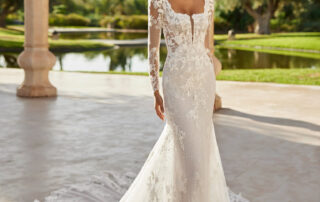 La robe Olesa de Rosa Clará est une pièce d’exception pour la mariée moderne et raffinée. Sa coupe sirène près du corps épouse la silhouette avec élégance et féminité, mettant en valeur chaque courbe de façon harmonieuse.
