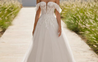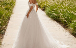 Une création qui incarne la féminité et la grâce, parfaite pour une mariée qui souhaite conjuguer glamour et romantisme.